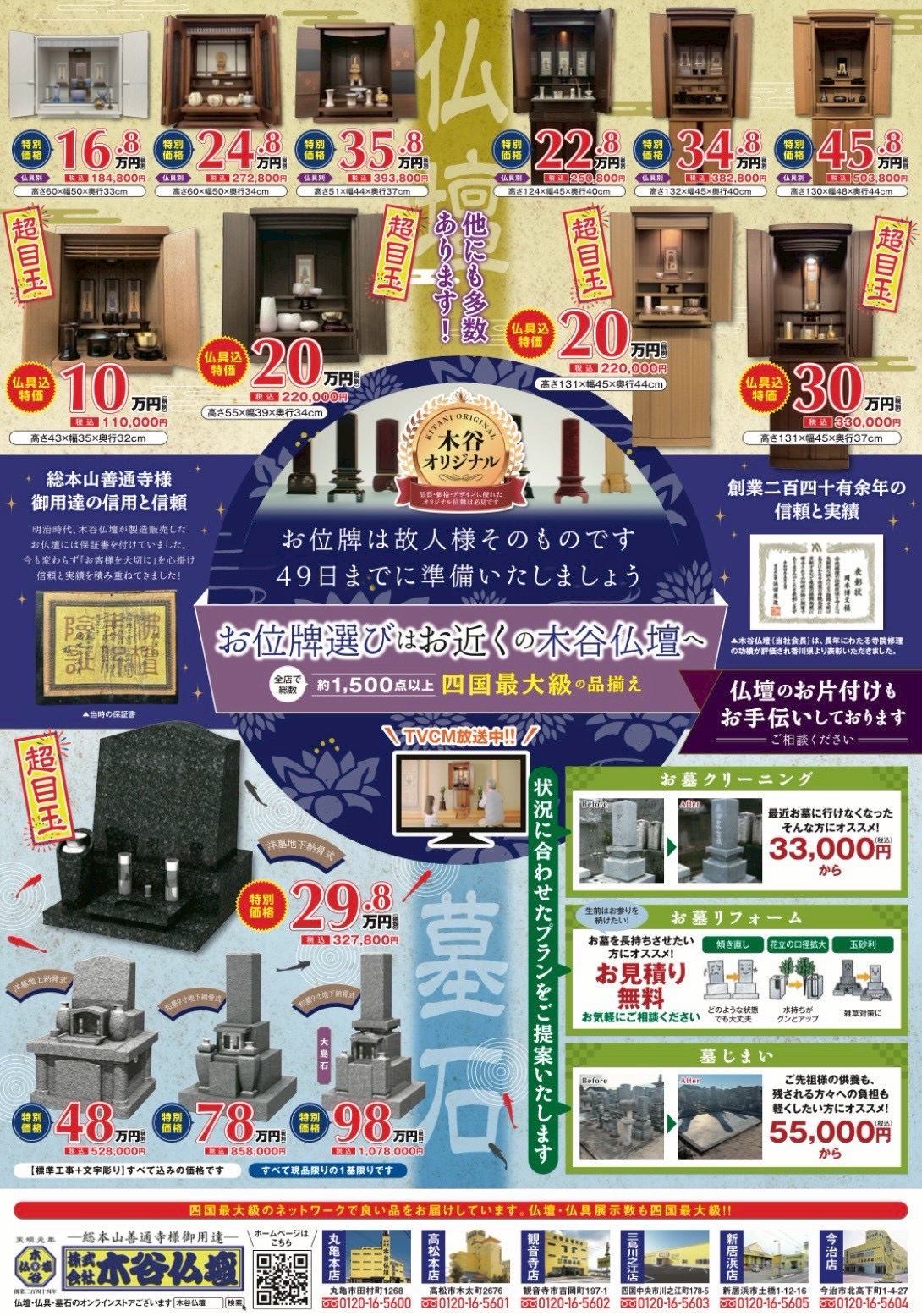 墓じまい・仏壇・墓石・仏具・位牌のご用命は香川・高松・愛媛の木谷仏壇まで