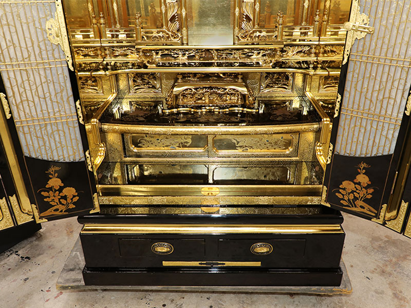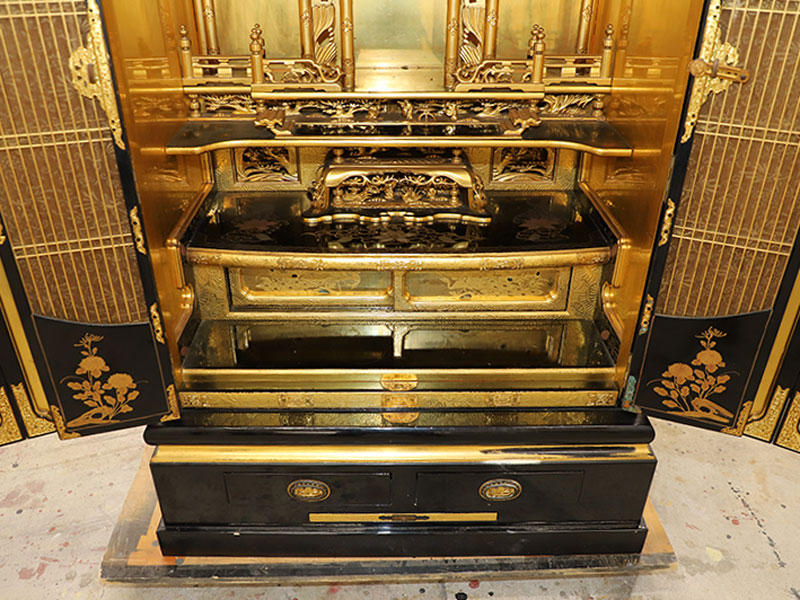 大切に使われていたため、傷みや汚れ等が少なかったお仏壇ですが、新品のような輝きを取り戻しました。