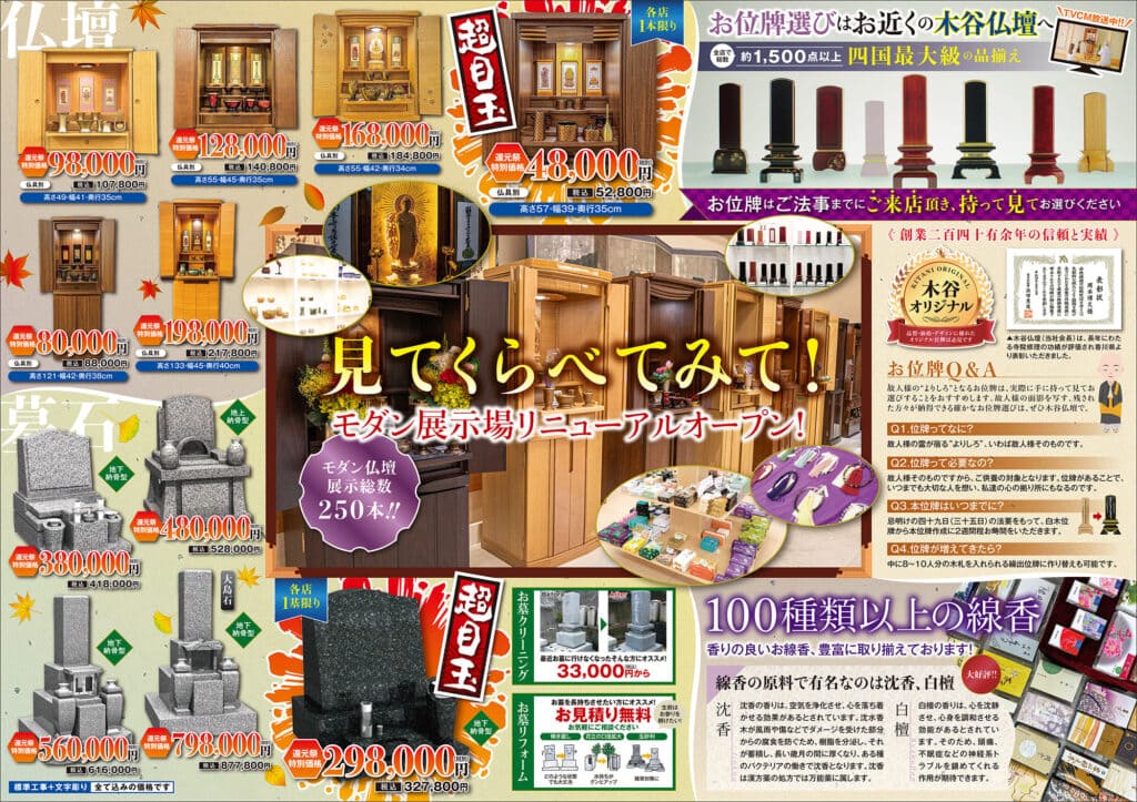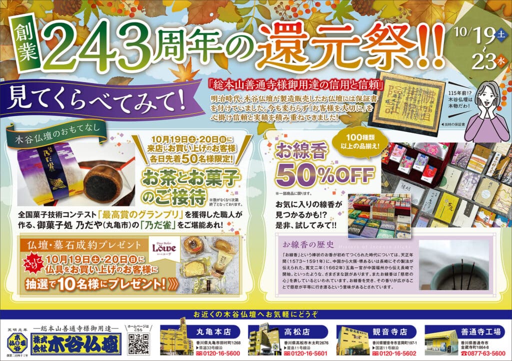 仏壇墓石がお得な5日間!お線香の半額セールやお茶菓子のお接待も✨