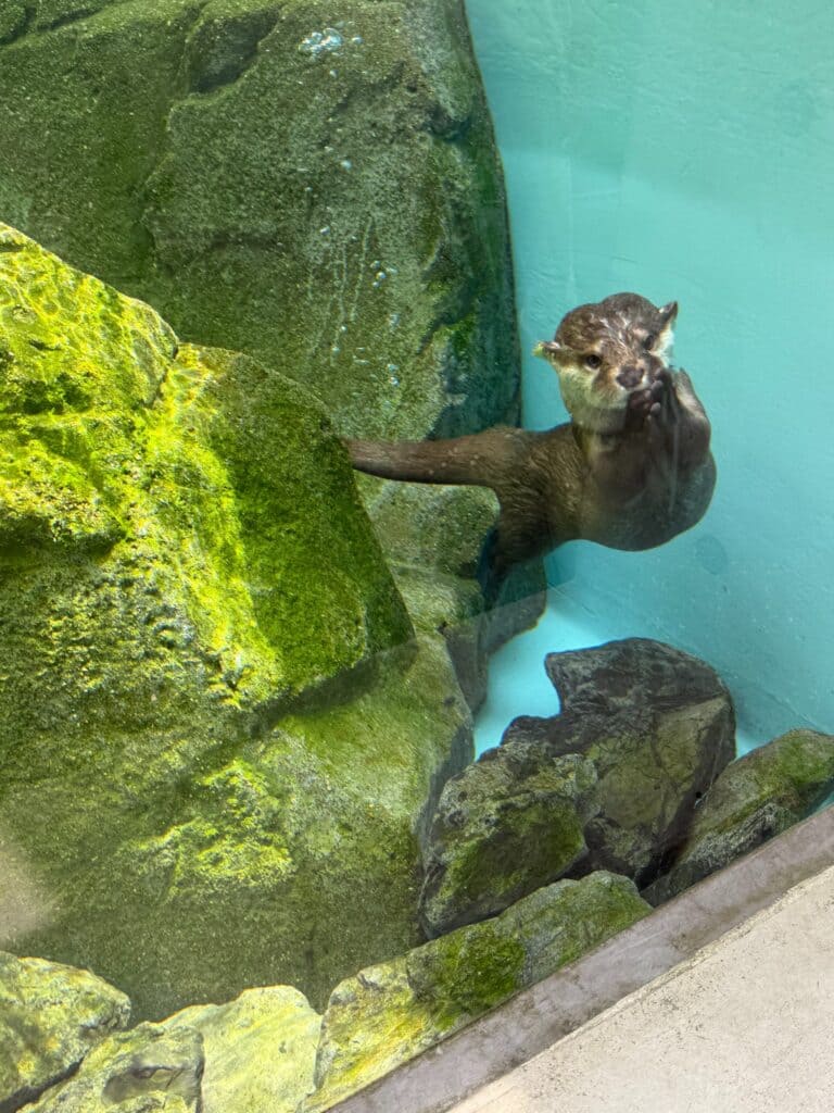 コツメカワウソがファンサービスしてくれました。ちっちゃいおててがかわいかったです。