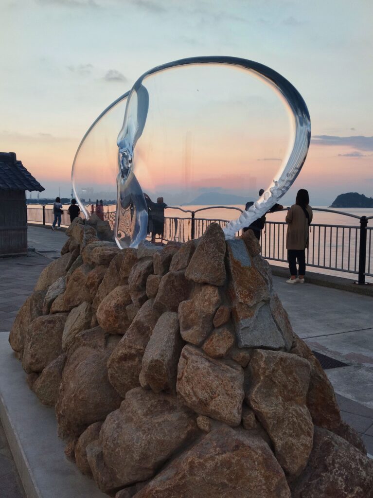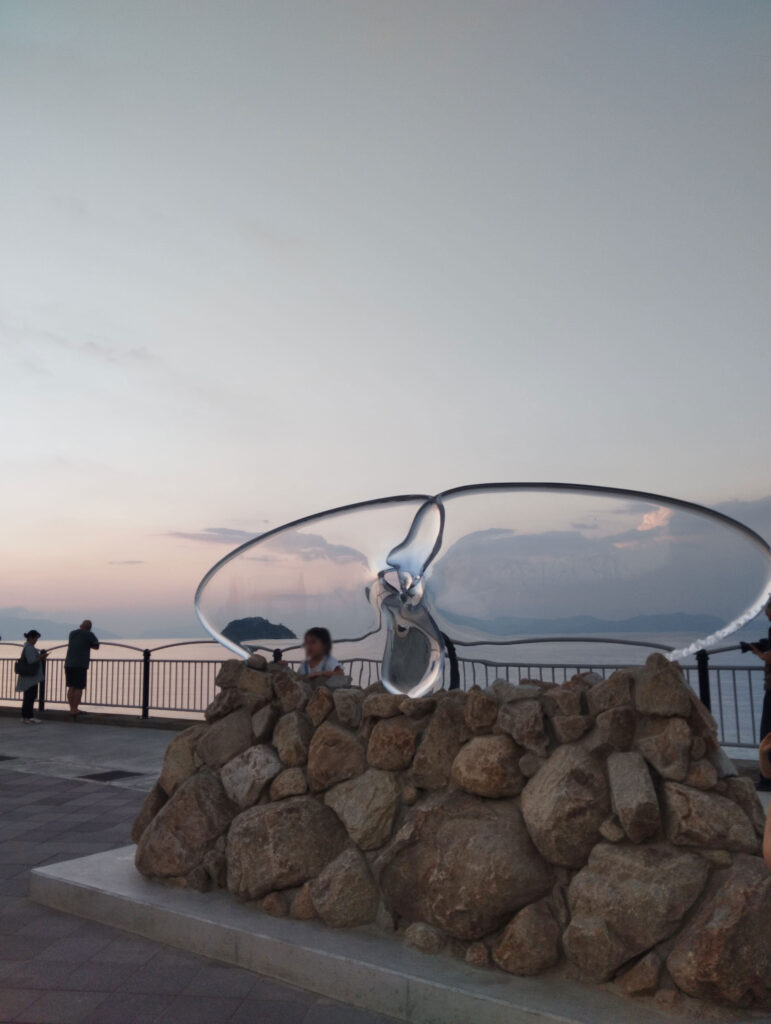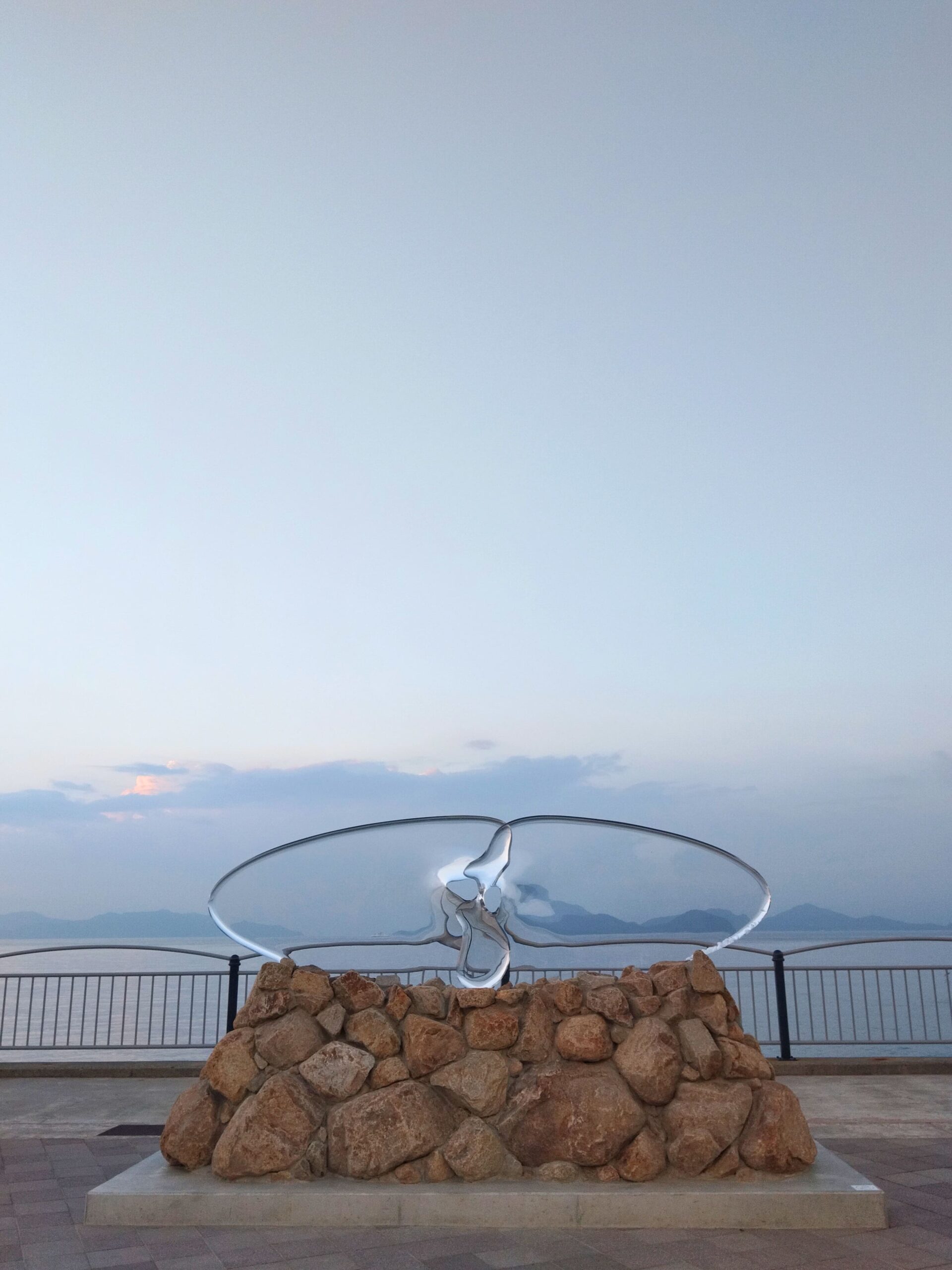 アクリルでできているそうですが、幻想的な形でこの作品ごしに見える景色もまたいつもと違ってとても綺麗でした🌊