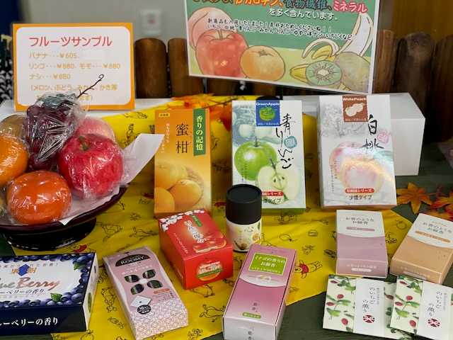 店内では、【フルーツの香りのお線香】を展示しました。🍊🍎🍑🍐🍓