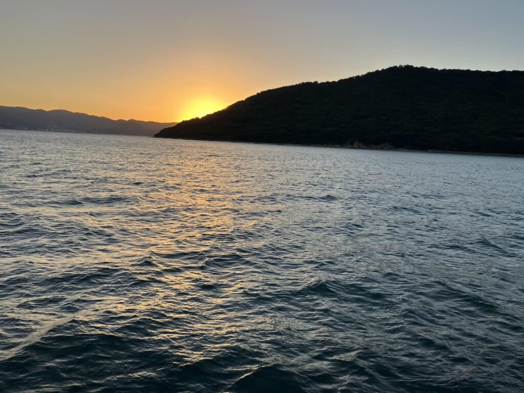 夕方のフェリーに乗るころ、空がオレンジ色に染まりはじめていました。