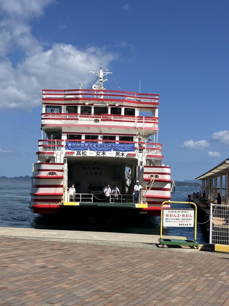 高松港からフェリーに乗り、瀬戸内国際芸術祭の会場のひとつ「女木島(めぎじま)」へ向かいました。