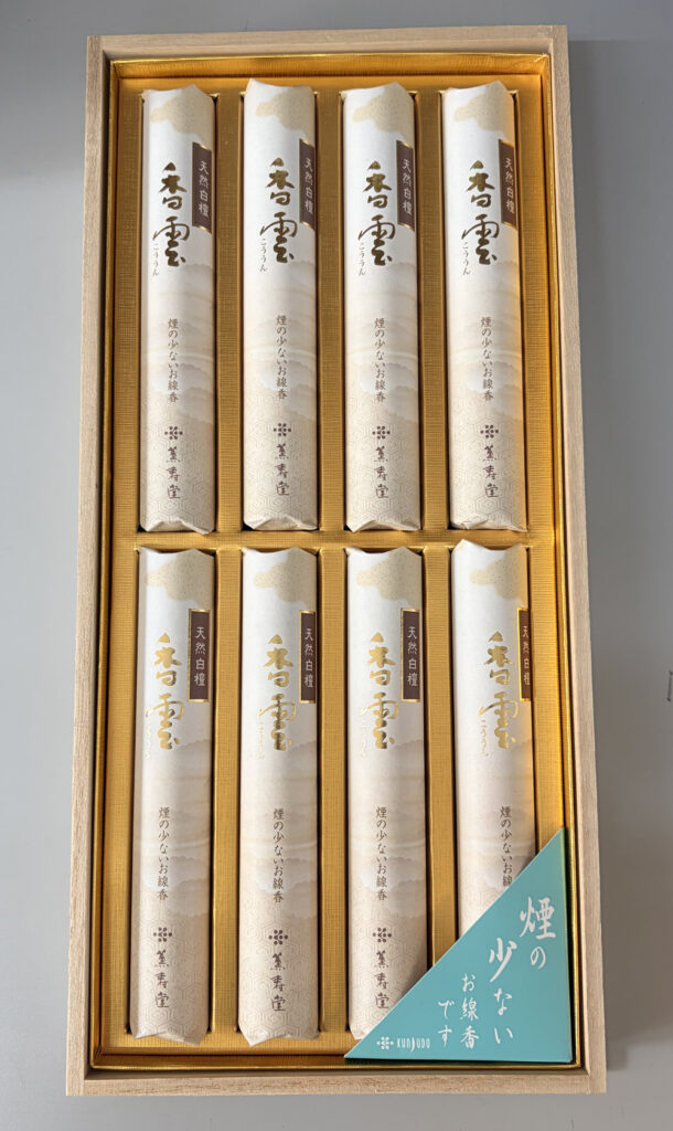天然白檀の風雅な香りが広がる煙が少ないタイプのお線香です。