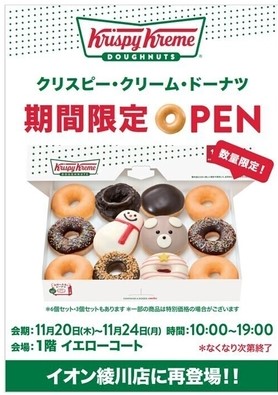 期間限定でイオン綾川に「クリスピー・クリーム・ドーナツ」が出店していると聞いて、さっそく行ってきました✨