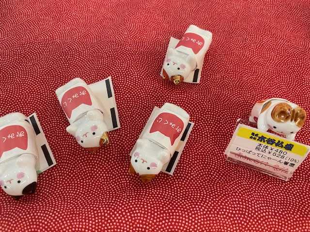箸置きのねこちゃん🐱は全部で5種類、黒ぶち、三毛、とら、金、サバ。