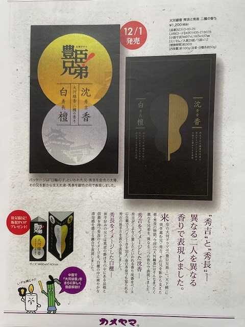 毎年、カメヤマローソクさんが大河ドラマのコラボ線香を作って下さっています。