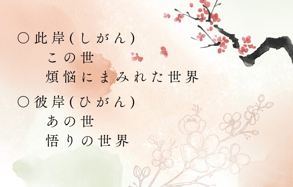 この期間は、此岸(しがん)と彼岸(ひがん)が最も近づく日であり、六波羅蜜(ろくはらみつ)の修行をすることで彼岸に辿り着けるとされています。そこに、日本の先祖崇拝の風習が結びつき、現在も日本の伝統文化として「お彼岸」が設けられています。