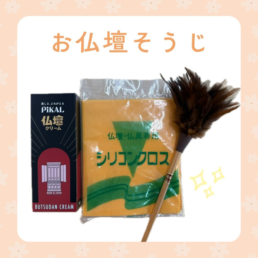 お供え商品、数多く揃えております。お仏壇そうじの道具もございます。