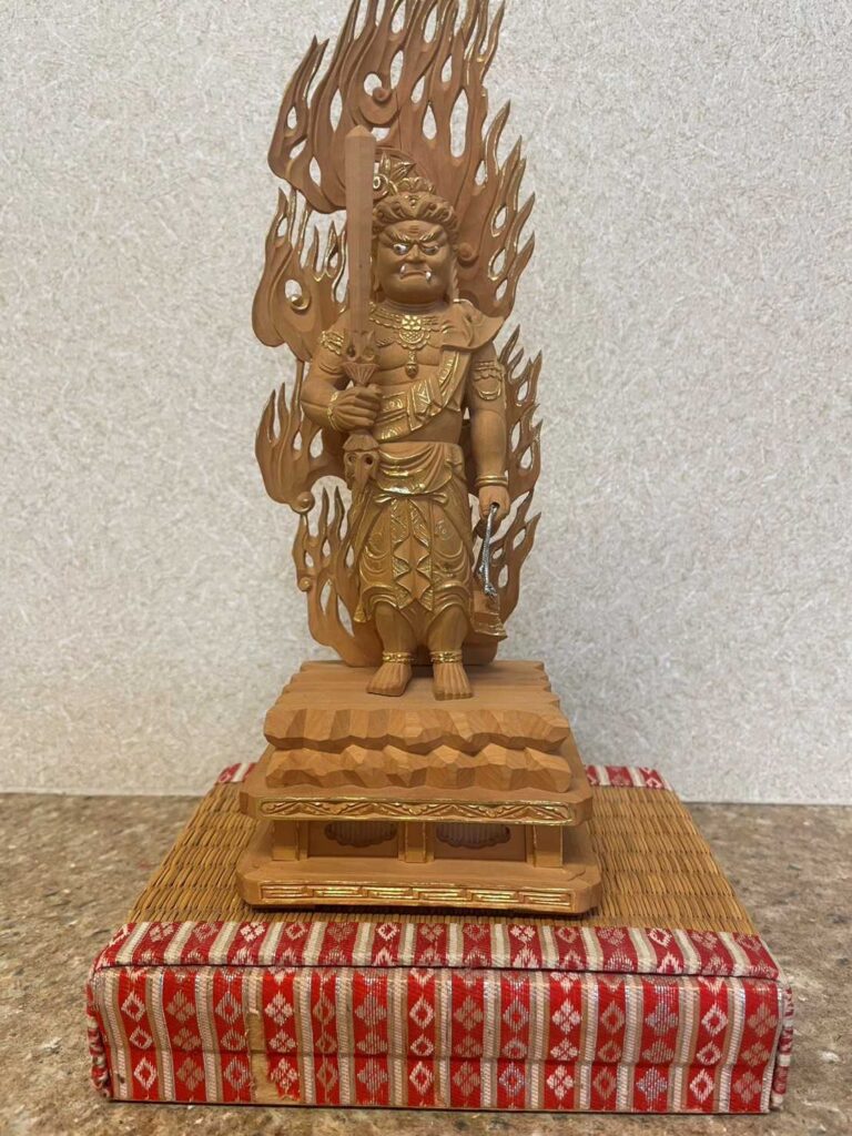 このお不動様は、大日如来様の化身とも使者ともいわれていて、顔とか怖くて(絶対怒ってる?)剣や鎖を持っていて、他の仏様とはちょっと違ってますよね。