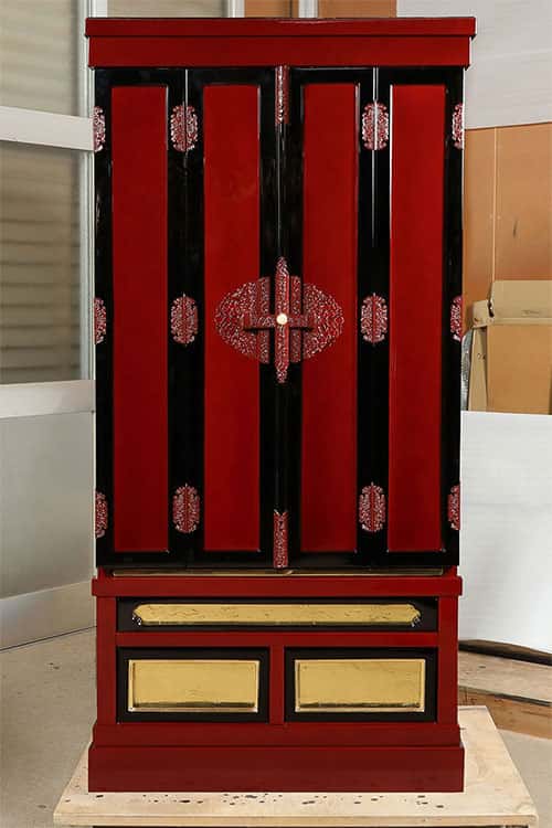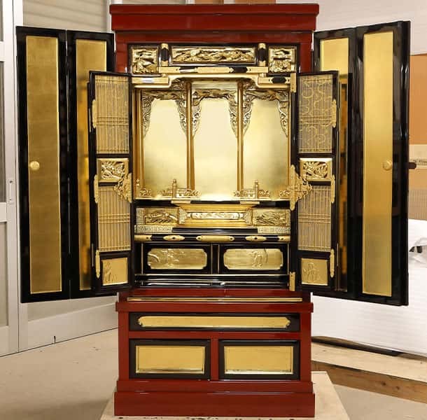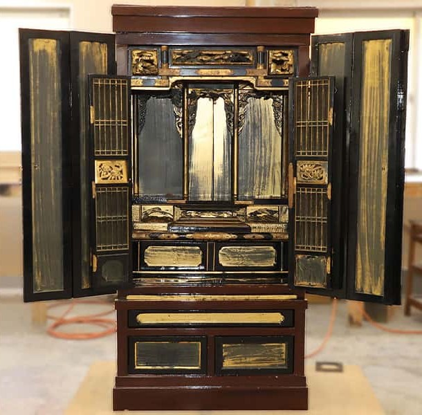 仏壇修繕をいたしました。 木地の損傷が激しく、全体的に金箔がすすけて剥がれている状態だったので、修復作業に時間がかかりましたが、修繕前の状態と比べるとその出来上がりは見違える様になったと思います。ご依頼いただいたお客様には、まるで新品のようだと嬉しいお言葉をいただけました。この度は、ありがとうございました。 before after 詳しくはこちらをご覧ください。 その他、修繕・お洗濯事例はこちらをクリック☟ FacebookX