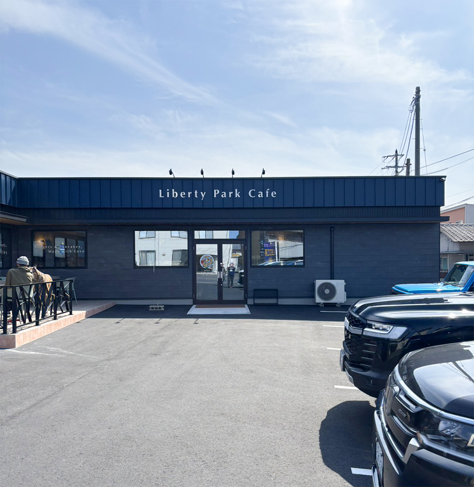 その名は “Liberty Park Café” 。東山崎町川添小学校の南の道を挟んだ南西側にあります。