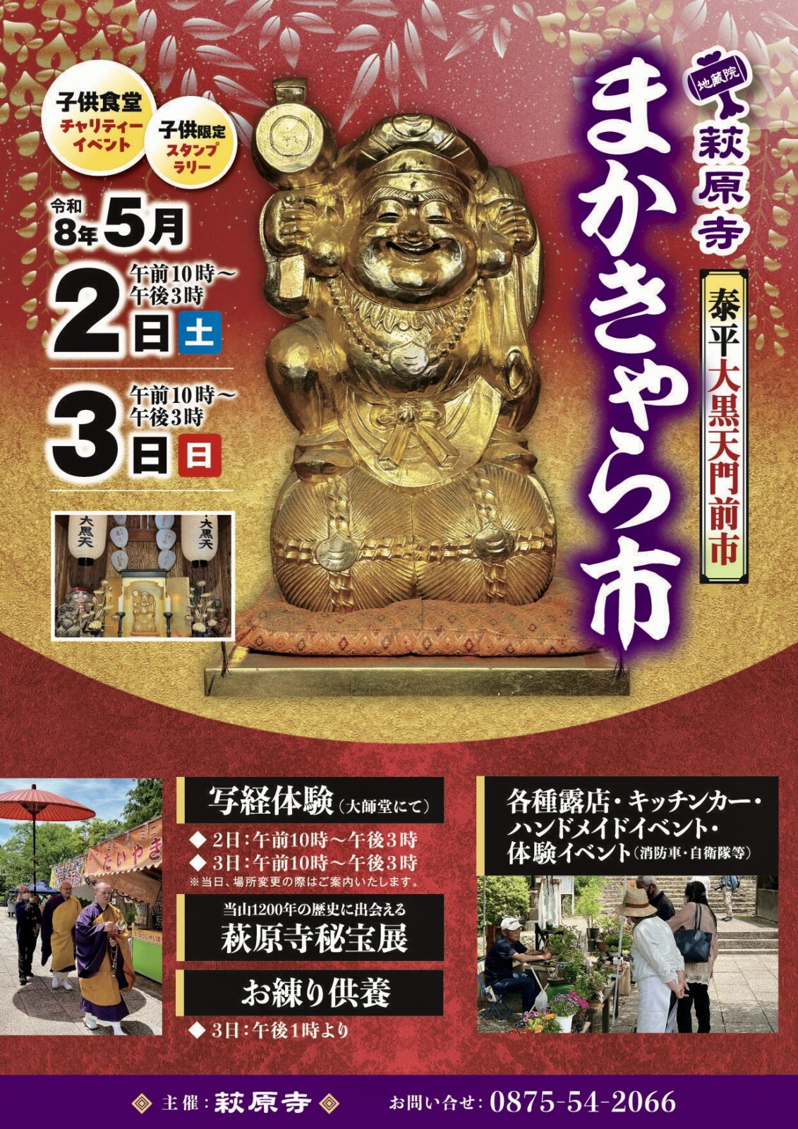 写経体験や萩原寺秘宝展など、特別な体験ができます。お子さまも楽しめるスタンプラリーもございます。