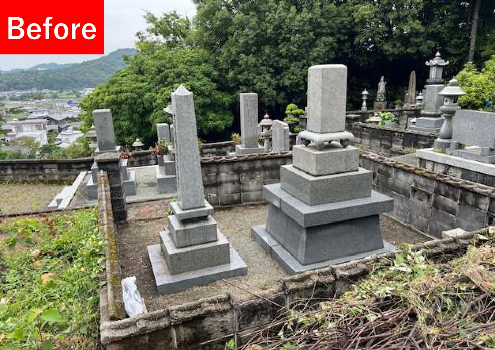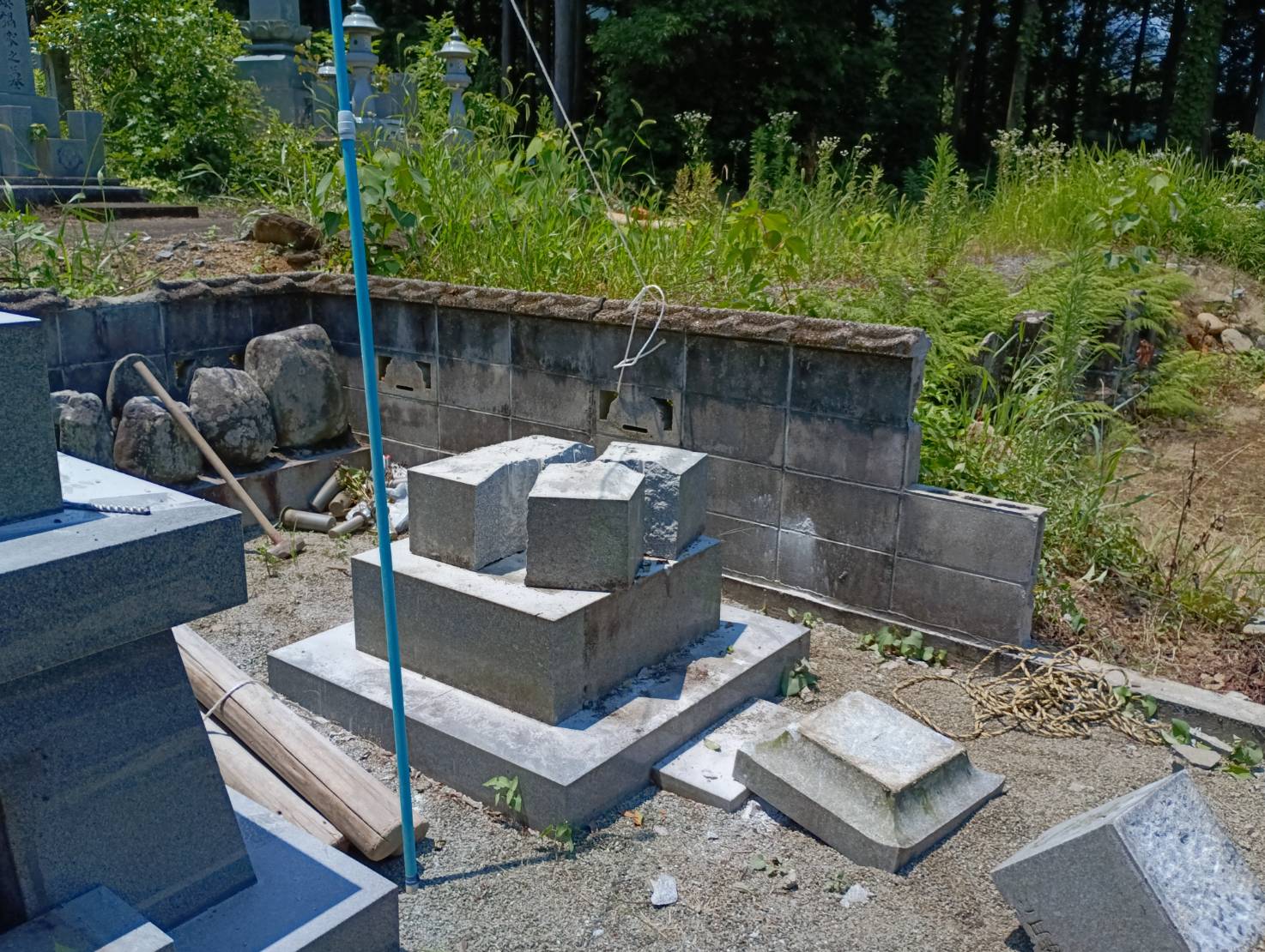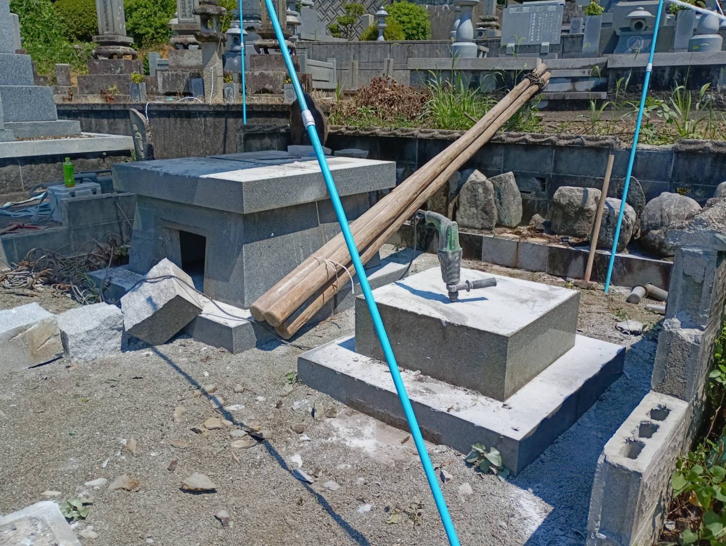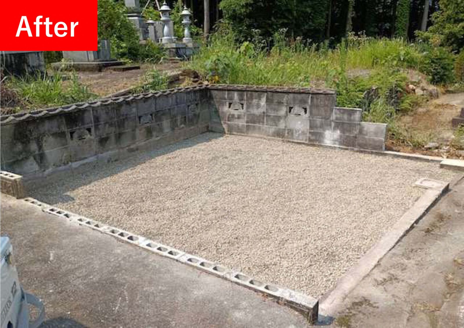 背面及び側面の一部ブロックは、墓地管理者の方と相談のうえ土留めとして残しております💡